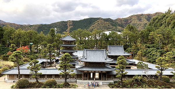 奈良の法隆寺だってあります。入り口でガイドさんが説明してます。芸がこまかい。