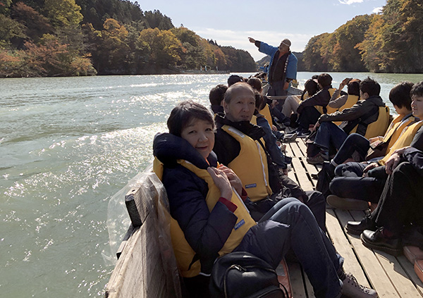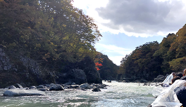 寒そうなのでダウンのコートを着ていったので、救命胴衣でもこもこです。