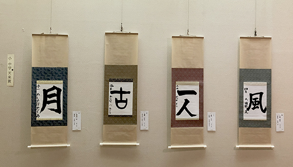 天来賞受賞作品は天来記念館の門流作品展示室に展示されました。1年生から4年生まで。
