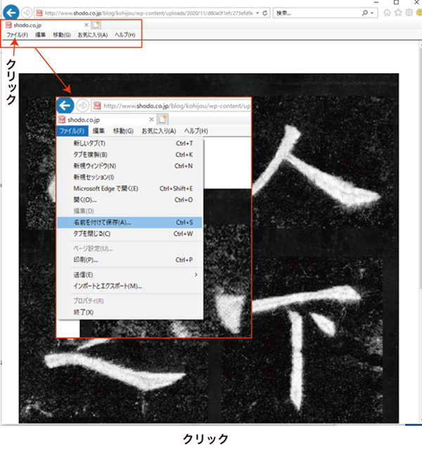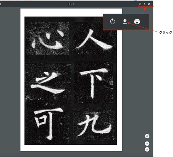 まずは、「古碑帖の正確な見方 第三回上」のお手本画像のすぐ上にある∇お手本ダウンロード∇をクリックしてください。