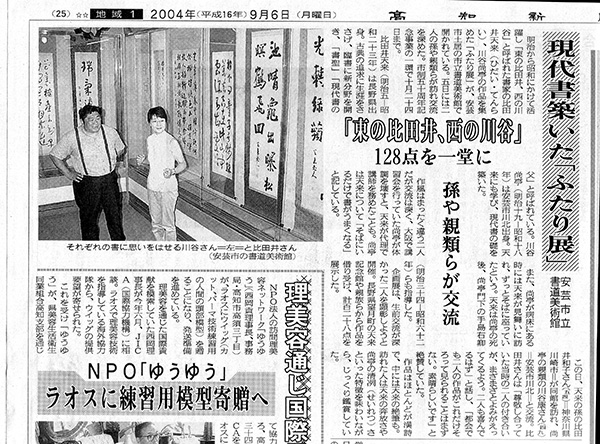 なぜ、2004年かというと、その年、安芸市の書道美術館で、佐久市立天来記念館から比田井天来の作品を運び、「比田井天来・川谷尚亭 ふたり展」が開催されたのです。
