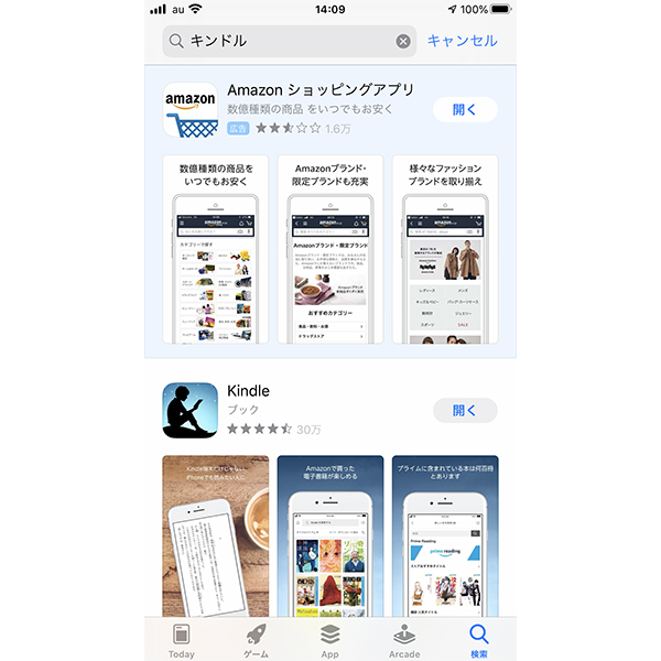 アプリストアで「キンドル」で検索すると、なぜか2つ目に出てくる「Kindle」。