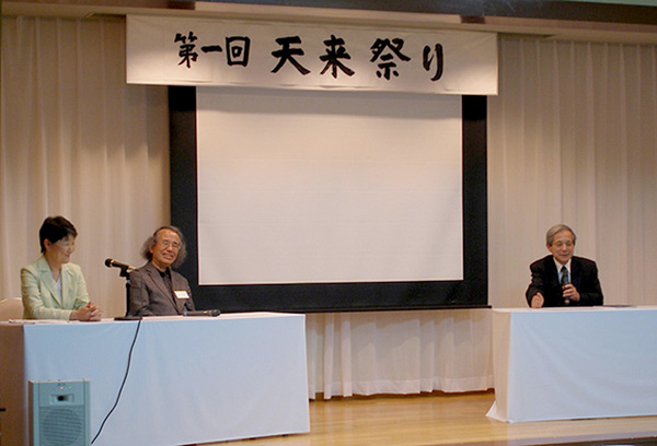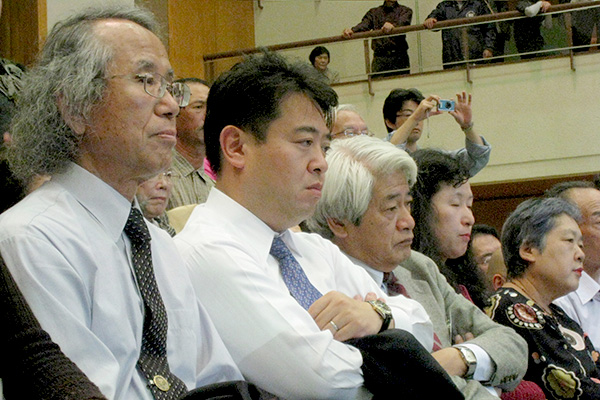 左から田宮文平先生、佐久市長柳田清二氏(偲ぶ会実行委員長)、石原太流先生