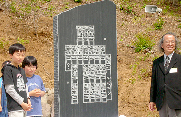 大沢雅休先生の石碑「鎧戸」の序幕は、田宮文平先生と地元の子どもたちによって行われました。