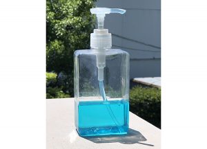 本日の洗剤はブルーです。(透明な洗剤に食品用染料を入れている)