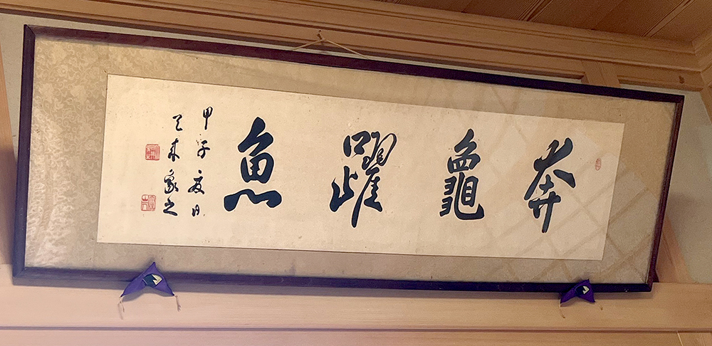 母屋に案内され、南谷の生活した部屋に通されると、まず目についたのは庭に面した長押の上に飾られた天来の扁額であった。