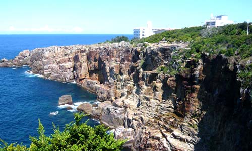 右から波が寄せてきて、左の穴で海水を吹き上げるそうです。嵐の時なんか、すごいだろうなー。