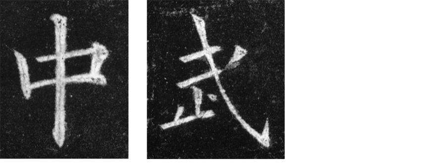 縦画は収筆部の形によって鉄柱勢(てっちゅうせい)、垂露勢(すいろせい)、懸針勢(けんしんせい)の三つに分けられます。先に挙げた「千」「年」は懸針勢でした。鉄柱勢と垂露勢の作例をやはり九成宮醴泉銘から掲げます。