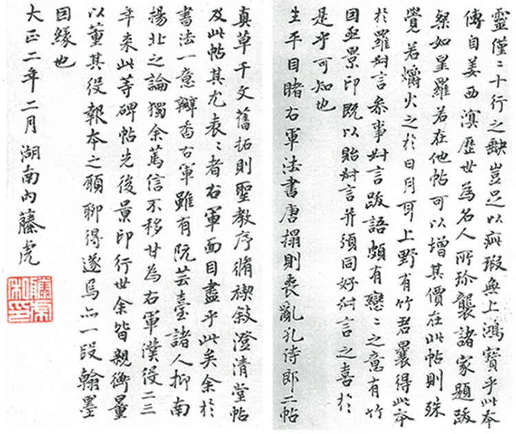 上野本「十七帖」後跋に書かれた湖南の識語。