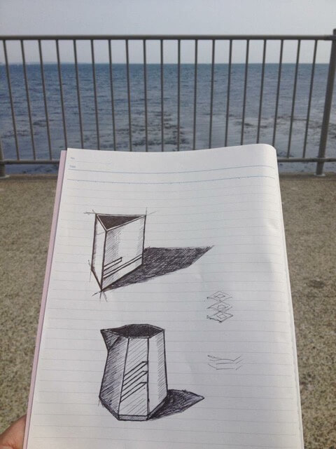 鎌倉に住んでいた頃、稲村ヶ崎までの散歩中にデザイン案を描きました。