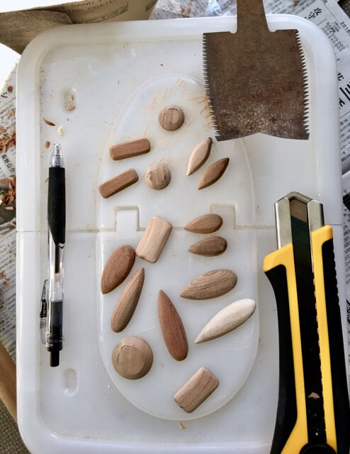 作品はこれまでは図面を木地業者に渡し木地を使ってもらっていました。今回は写真にあるように小さなノコギリとカッター、サンドペーパーを使って自分で木地を作っています。正に一点物です。
