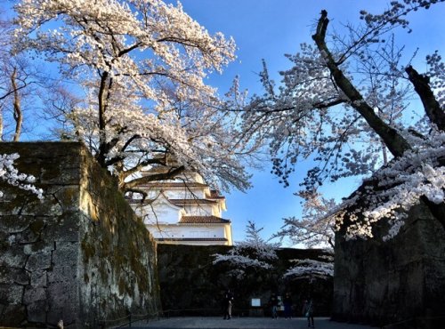 夕方着いた鶴ヶ城の桜は満開。桜の木の本数と花の量に圧倒されました。