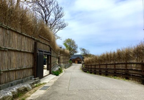 日本海から吹き付ける強い季節風から家を守る為に竹で作った間垣と呼ばれる垣根で家を囲っています。ここの風景が好き。晩秋の夕方は空と海とが何とももの寂しい紺色になります。