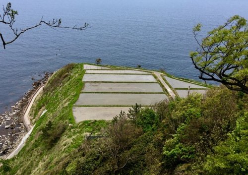 海沿いの田んぼは丁度、田植えの前でした。