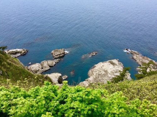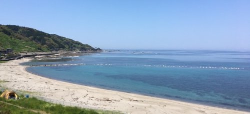 半島の景色や自然にも魅力があります。袖ヶ浜という海水浴場でキャンプ場も整備されています。海の青さが伝わりますでしようか?