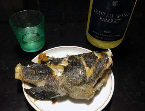 この日の肴は黒バチメ(黒ソイ)です。それを塩焼きでいただきました。夏が旬な魚でこの時期、脂が乗って美味。ただ、脂が乗り過ぎて焼くと脂が滴り落ちてくるので、焦がさないよう付きっ切りで焼きます。本当、これを食べるとまた夏休みに帰省した実感が湧いてきます。