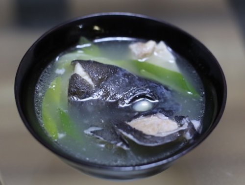 石鯛は魚というよりはベーコンを食べているような食感です。頭と背骨は潮汁になりました。汁というよりはスープのようでとても濃厚な味でした。