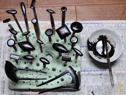 本当は今回の作業工程を都度写真に収める予定でした。ただ、都度漆が着いた手袋を外してカメラを手に持ち替えると仕事が進まないし、何だか講師にも悪い気がして。撮りたかった幾つかの工程の写真は収められませんでした。