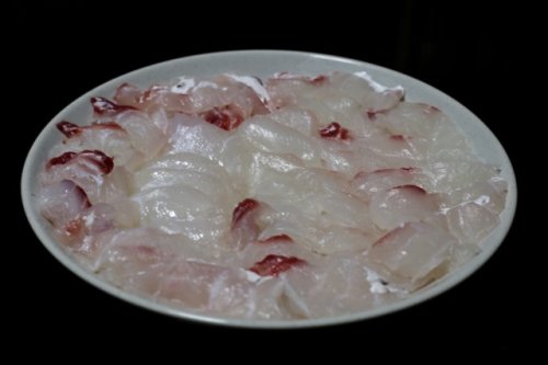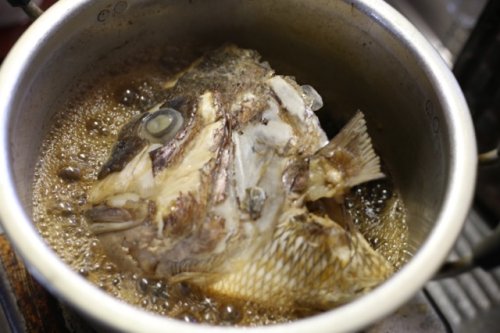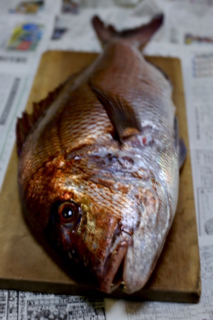 こちらは、一晩寝かせてから刺身にしました。頭は兜煮です。半分に割りたいところですが、切れない出刃庖丁だとこちらが怪我しそうなのでそのまま大鍋に入れました。
