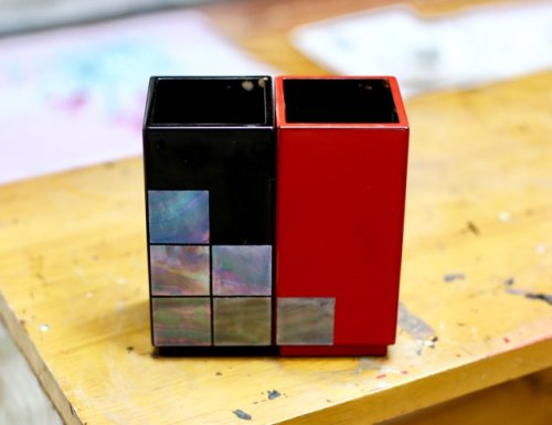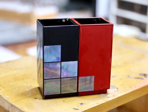 こちらも貝切りと貝貼りは高岡市の螺鈿工房に依頼しました。狂いなくぴったり合わせる技術は素晴らしい。この後の仕上げは輪島の職人に頼みました。