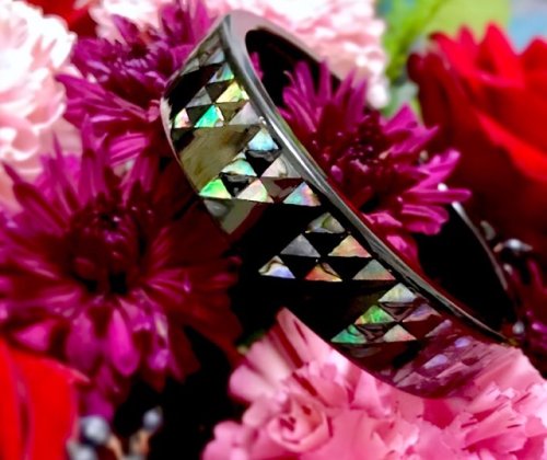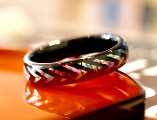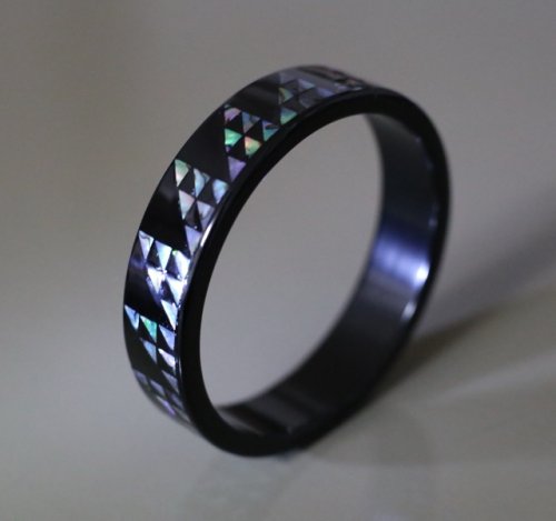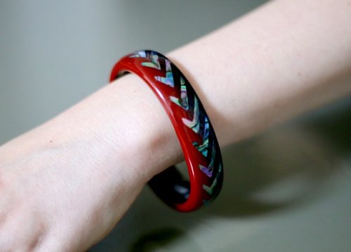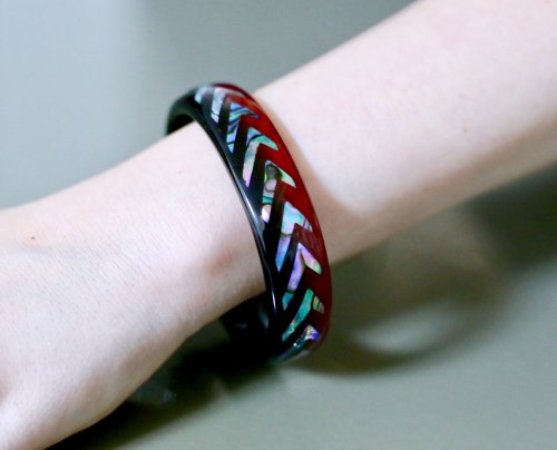 バングルの幅は約2cm。その中で同じ模様を繰り返し展開します。やはり、どうしてもデザインの制約を受けますね。赤と黒は輪島塗りの基本的な色の組み合わせです。
