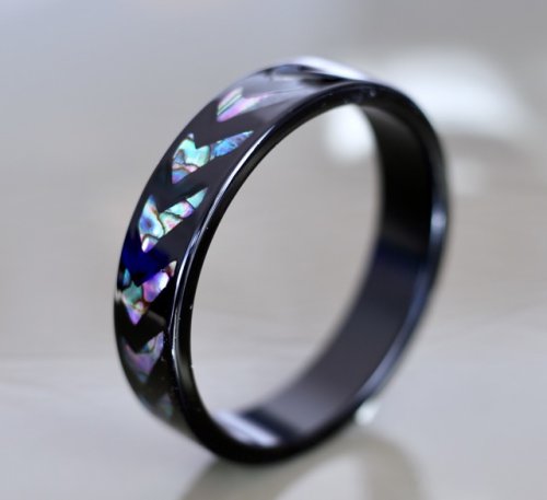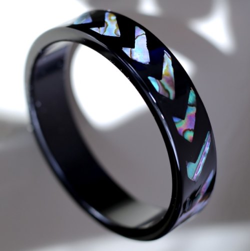 3本の中ではデザインと貝の模様(メキシコ貝)が1番合っていると思います。この貝はとても華やかで綺麗なのですが、黒くなっている部分があり、貝の面積をある程度取らないと本来の華やかさが出てきません。