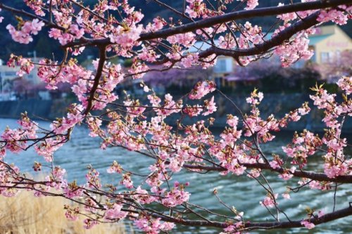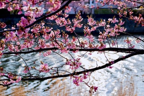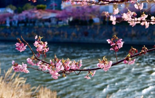 河津桜は見頃に。混雑を避けて平日に行ったにも拘らず、道中何箇所か渋滞に嵌ることに。また、暖かいと思ってたのに風が意外に冷たく、桜の木の下でお酒を飲むような気分にはとてもなれませんでした。