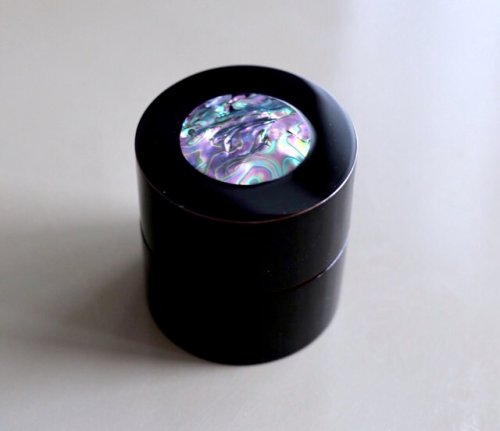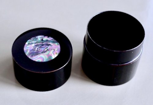 お茶を入れる棗(なつめ)です。 これも実家に残っていた無地のものを母親から譲り受け、それに貝を貼りました。