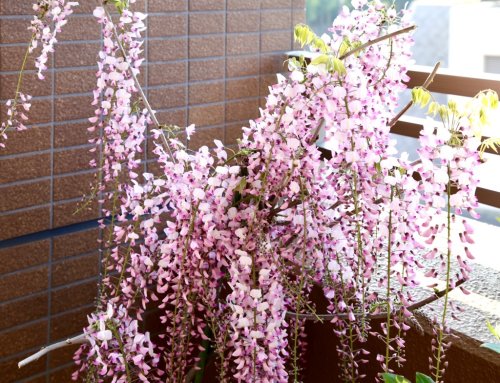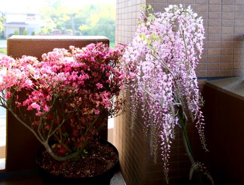 ちなみに、ベランダでは桃色の藤が満開になりました。
