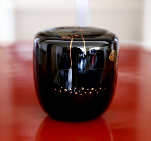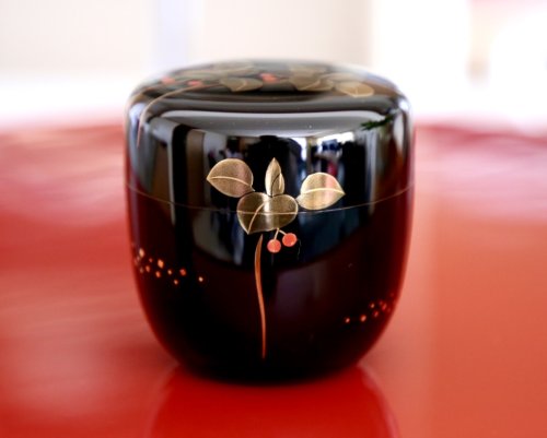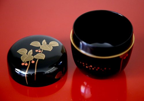 作品の絵は何とも可愛らしく、女性の蒔絵師の作品に間違われそうなくらいです。また、本体の下側に金を散りばめバランスをとっているのもセンスがいいですね。30年以上前に作られた作品ですが、時代を感じさせないデザイン、素晴らしい逸品だと思います。