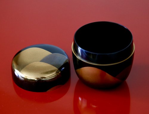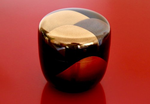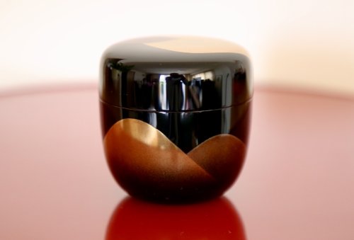 山々が重なり遠近感があります。こんな小さな容器の中で山々を表現。見るを人をして自分がこれまでに見て感動した山や景色を思い出させてくれます。圧倒的な存在感があり、並の棗ではないような雰囲気を醸し出しています。