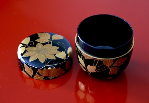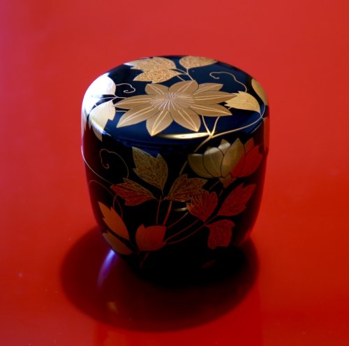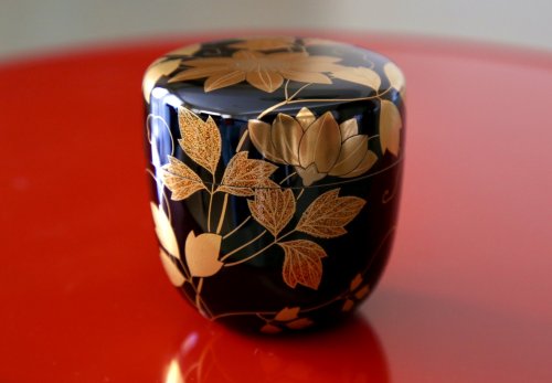 作品は蓋だけではなく、本体の周り全体に花と葉、つるが金を使い華麗に描かれています。蓋を起点に本体の周り360度に渡ってデザインするだけでも相当な時間を要したと思われます。