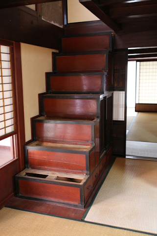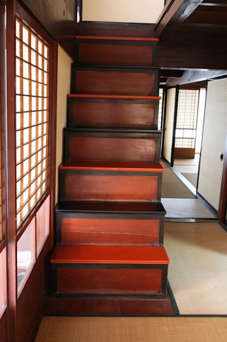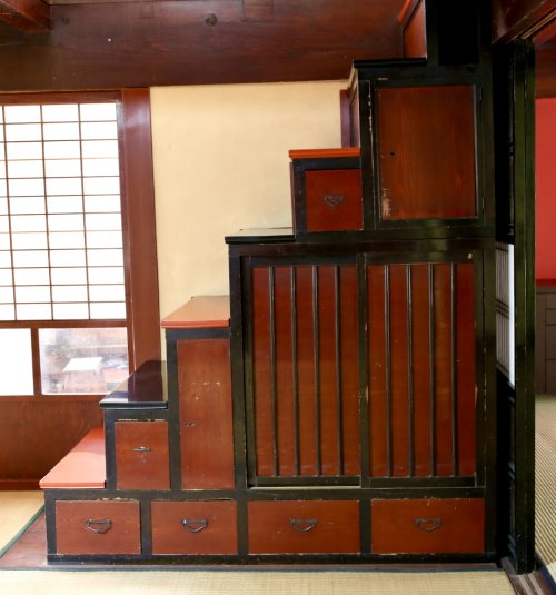 住居に取り付けられている漆塗りの箪笥階段。約100年前に作られたという割には大きな傷みもなく、趣もありとても気に入っています。