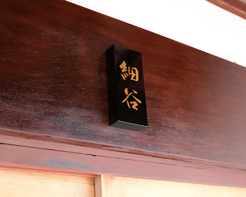 表札の字については、「細」の字は自分で書いたものの、「谷」の字はどうしても上手くかけずに断念。結局、輪島塗の箱屋さんに書いてもらいました。ただ、自分で書いた「細」の字は残してあるので、いつか「谷」が上手く書けた時にこの表札を自筆のものに書き換えようと思っています。