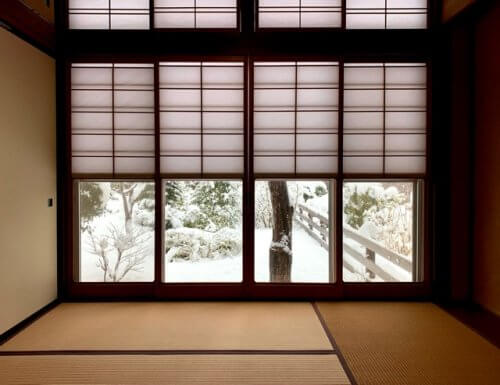 ギャラリーの茶室の雪見障子、この日の為にあります。
