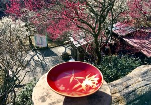 梅の花を描いた杯を持参して梅をバックに写真を撮る予定でした。