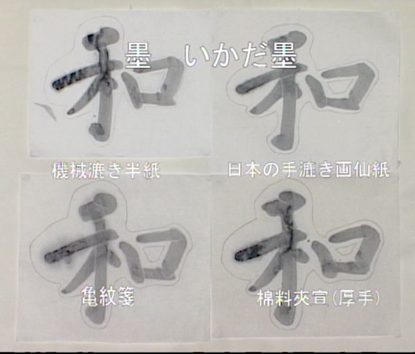 ビデオ「筆墨硯紙のすべて(全五巻)」の中にも「にじまない墨」が登場しますが、取材のとき、これはとても気になりました
