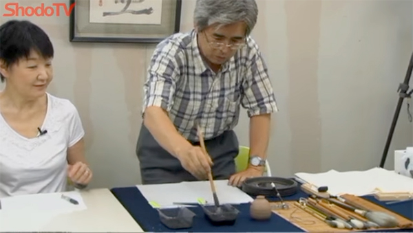 手島先生のもとで学ばれた貞政先生には、DVD「墨を極める」と「紙を極める」にご出演いただきました。