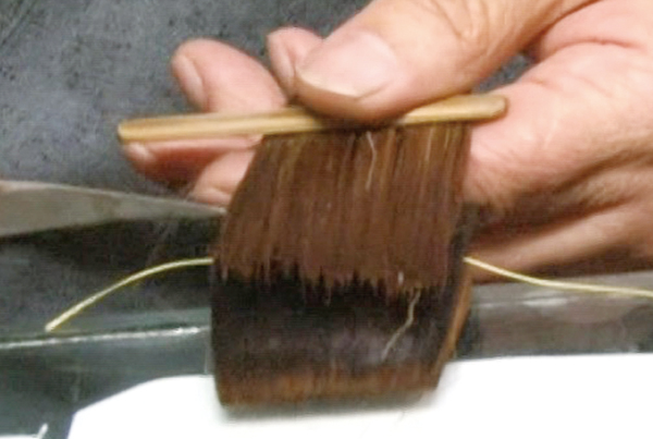 穂先全体が糊を含んだら、最後に余分な糊を拭います。