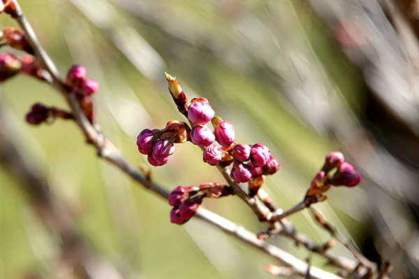 早咲きの桜の名は「阿亀(おかめ)桜」。