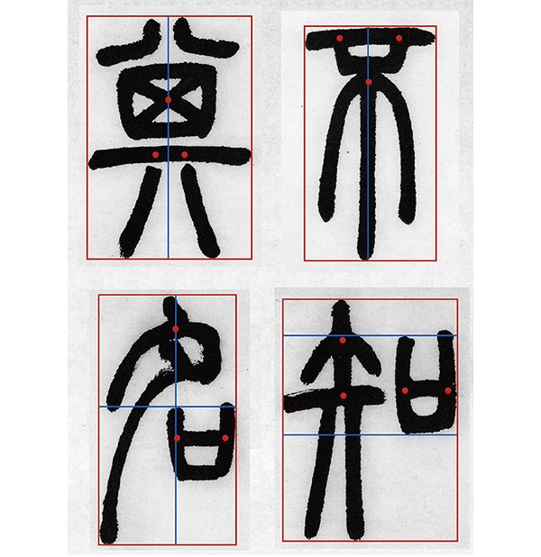 縦画は垂直、横画は水平で、上の二字は左右対称。