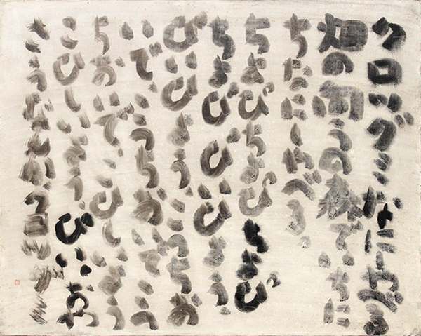 その後は南谷の使ったキャンバスに下地を塗ってインクや墨で書く時代が続きますが、それからは言葉や書体、空間などに実験の主体がうつりました。