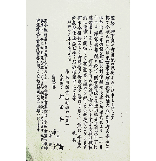 比田井小葩(本名康子・1914〜1972)は、1948年に比田井南谷と結婚。