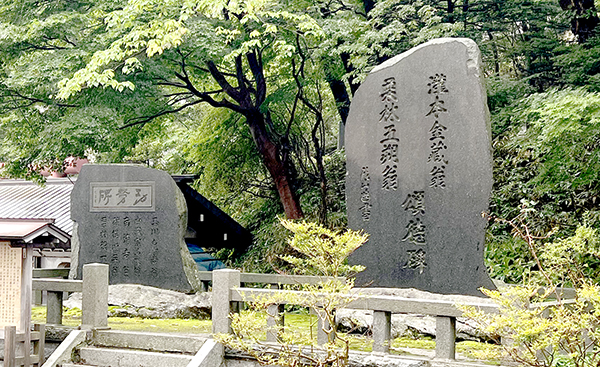 北海道登別温泉の開発と発展に功労があった瀧本金蔵と栗林五朔の頌徳碑です。
