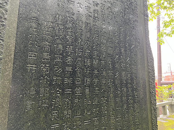 左に建つ「功労碑」には、登別温泉の発展に寄与した人々の名前が記されています。