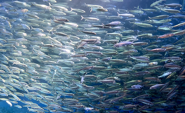 すごいスピードで泳ぎ回るイワシ。