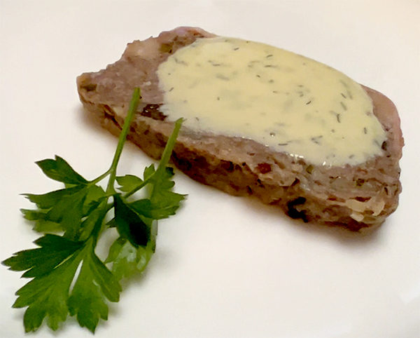 パテにはくるみ、ラムレーズン、グランベリー、オリーブが混ぜ込んであります。