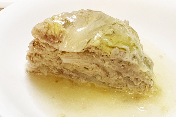 白菜とひき肉の重ね蒸しです。