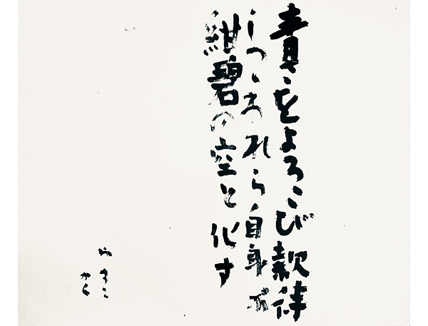言葉の響きを大事にしながら自分の書に反映することを目指して、様々な書体、筆を使っていますが、次の作品の紺碧の空と化すのところ等は、後の小径会の頃からの書風が見え隠れしています。