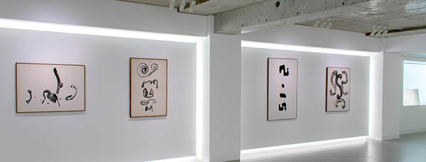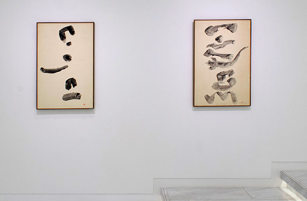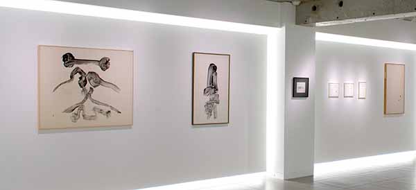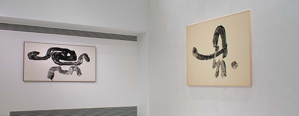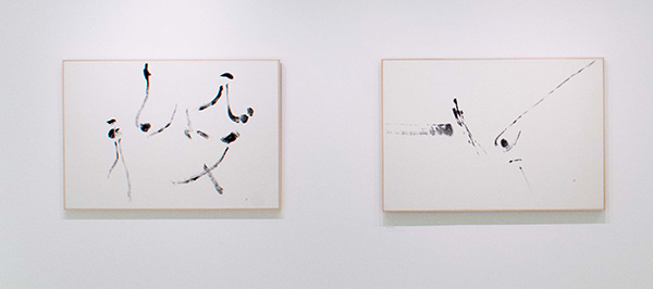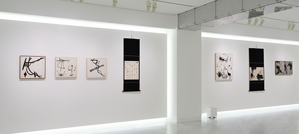 右の壁に展示されている「作品64-1」は、少し淡い「不思議な墨」の効果と、むくむくとした線のコントラストがおもしろい。